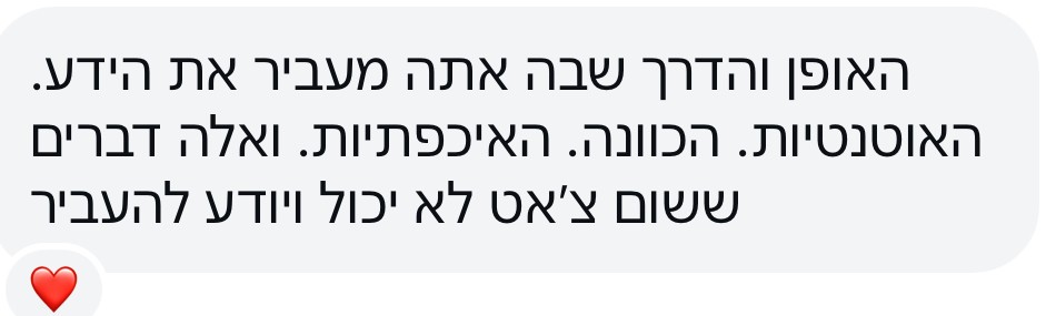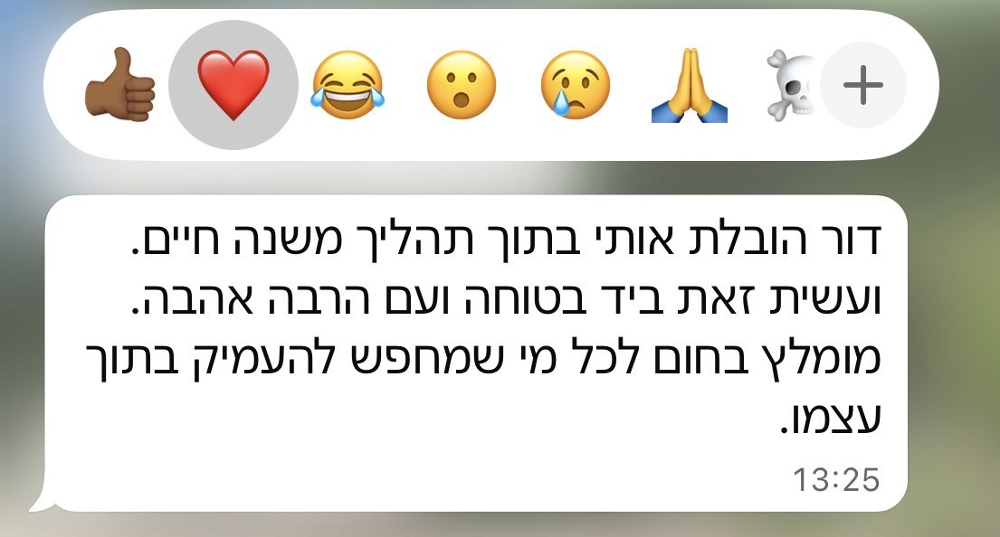 השילוב בין העוצמה של המפגשים לבין ההתמדה השקטה שלך בבית, הוא מה שמבטיח שבסוף התהליך תצא לדרך חדשה וחופשית,